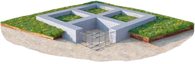 Данный тип основания обеспечивает устойчивость здания, защиту от уровней грунтовых вод, а также устраняет необходимость в дополнительных арматурных элементах. Это становится залогом надёжного и долговечного фундамента.